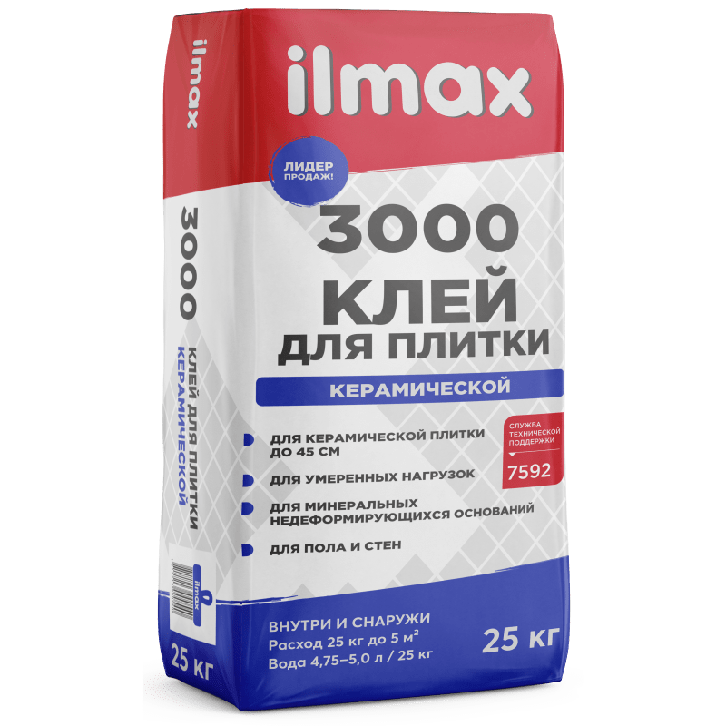 Растворная смесь сухая клеевая облицовочная Ilmax 3000, 25 кг, РБ