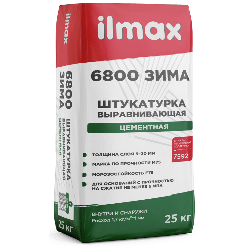 Растворная смесь сухая штукатурная цементная для наружных работ ILMAX 6800, 25кг зима, РБ